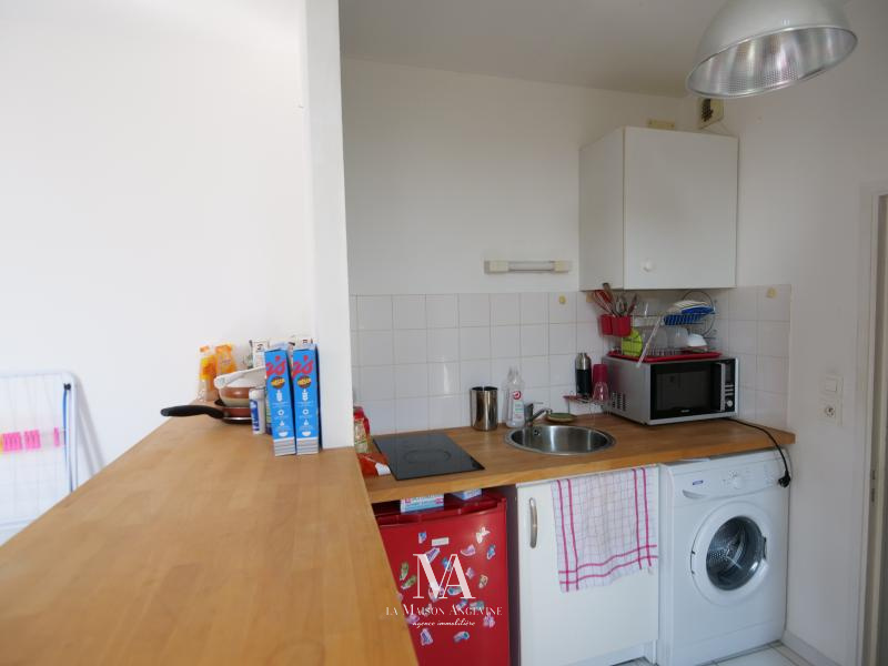 Dans petit ensemble, logement au 1er et dernier étage offrant une grande pièce, salle d'eau. Logement lumineux et très calme. Emplacement idéal. Loué actuellement en meublé 455 €CC. Batiment situé en fond de cour donnant sur un jardin commun.