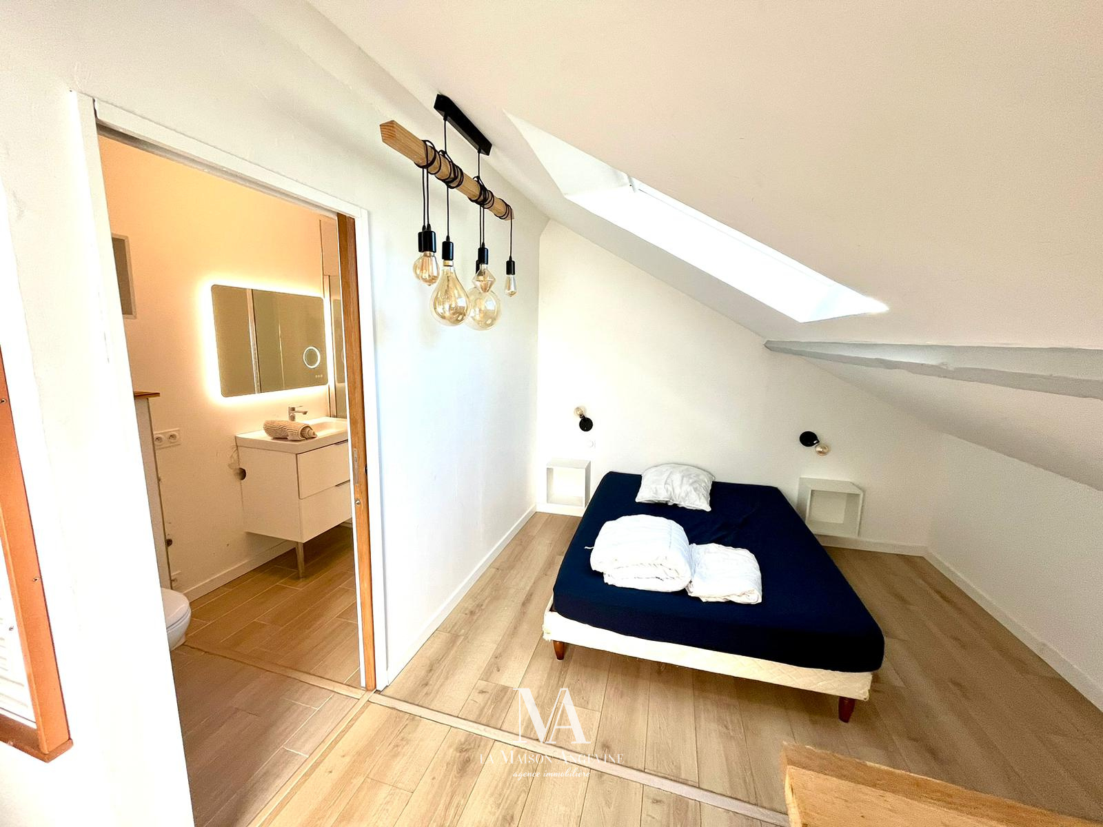 Elle se compose d’un salon lumineux avec une cuisine aménagée et équipée donnant accès à une terrasse d'environ 15m2 qui vous permettra de profiter des beaux jours dans un cadre calme et paisible. A l'étage, la chambre spacieuse dispose d’un dressing, offrant de nombreux rangements. Une salle d’eau moderne complète cet espace chaleureux.