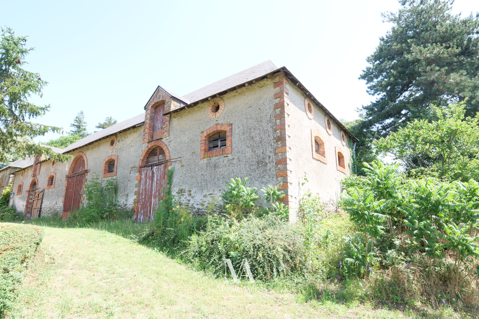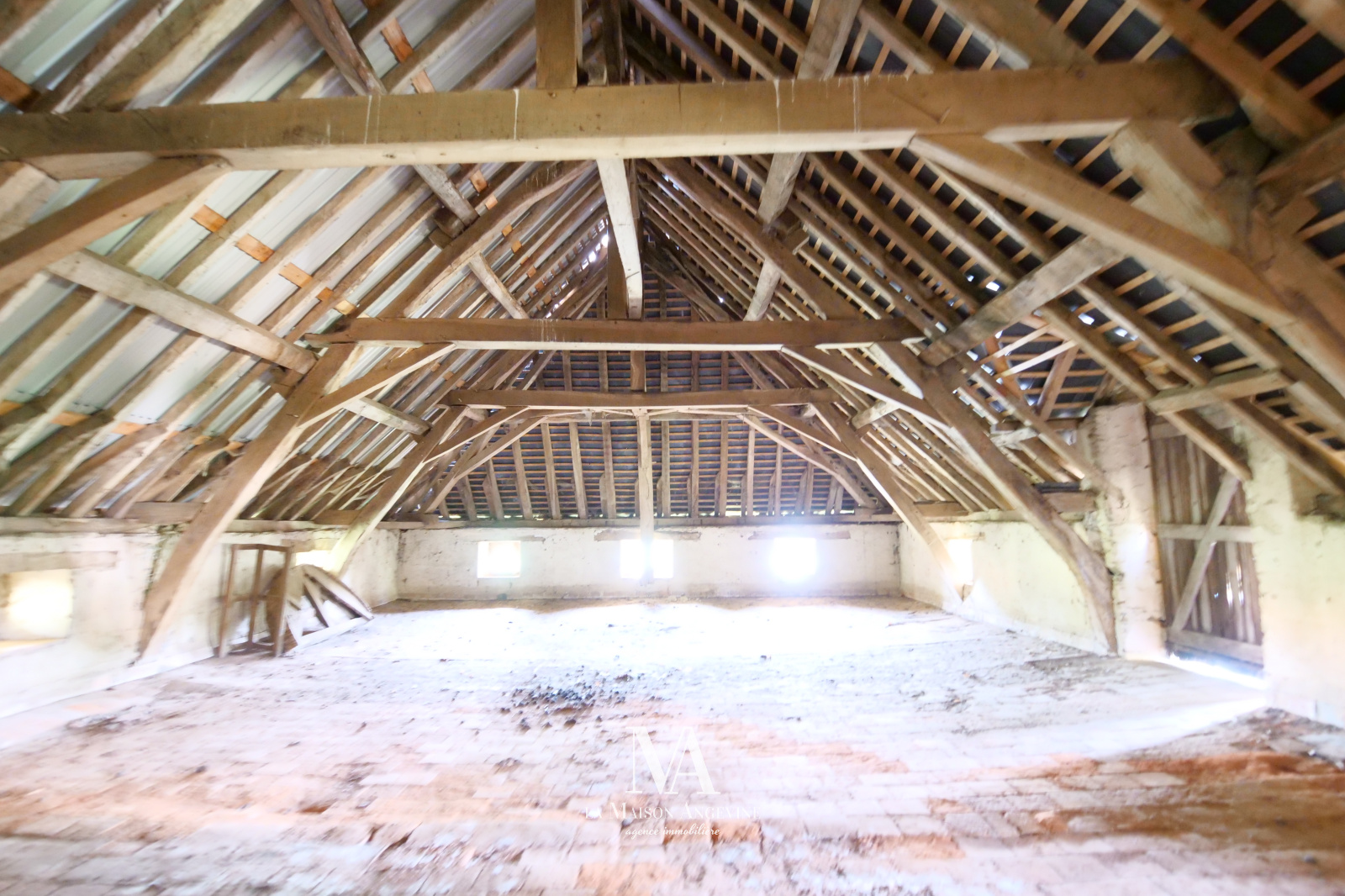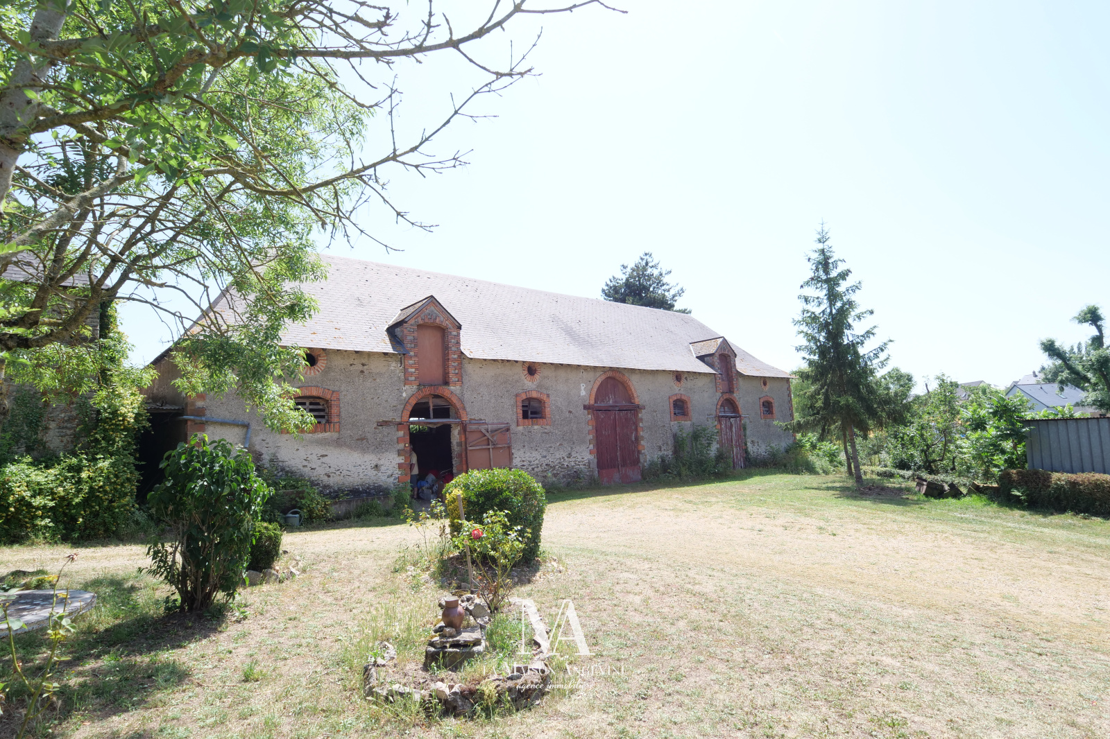 Très belle dépendance de 170 m² au sol, à rénover du sol au plfand. Maçonnerie et Charpente en très bon état. Grenier aménageable. Terrain d'environ 2300 m² avec étang (poss +), situé dans un bourg. A 20 min d'Angers.